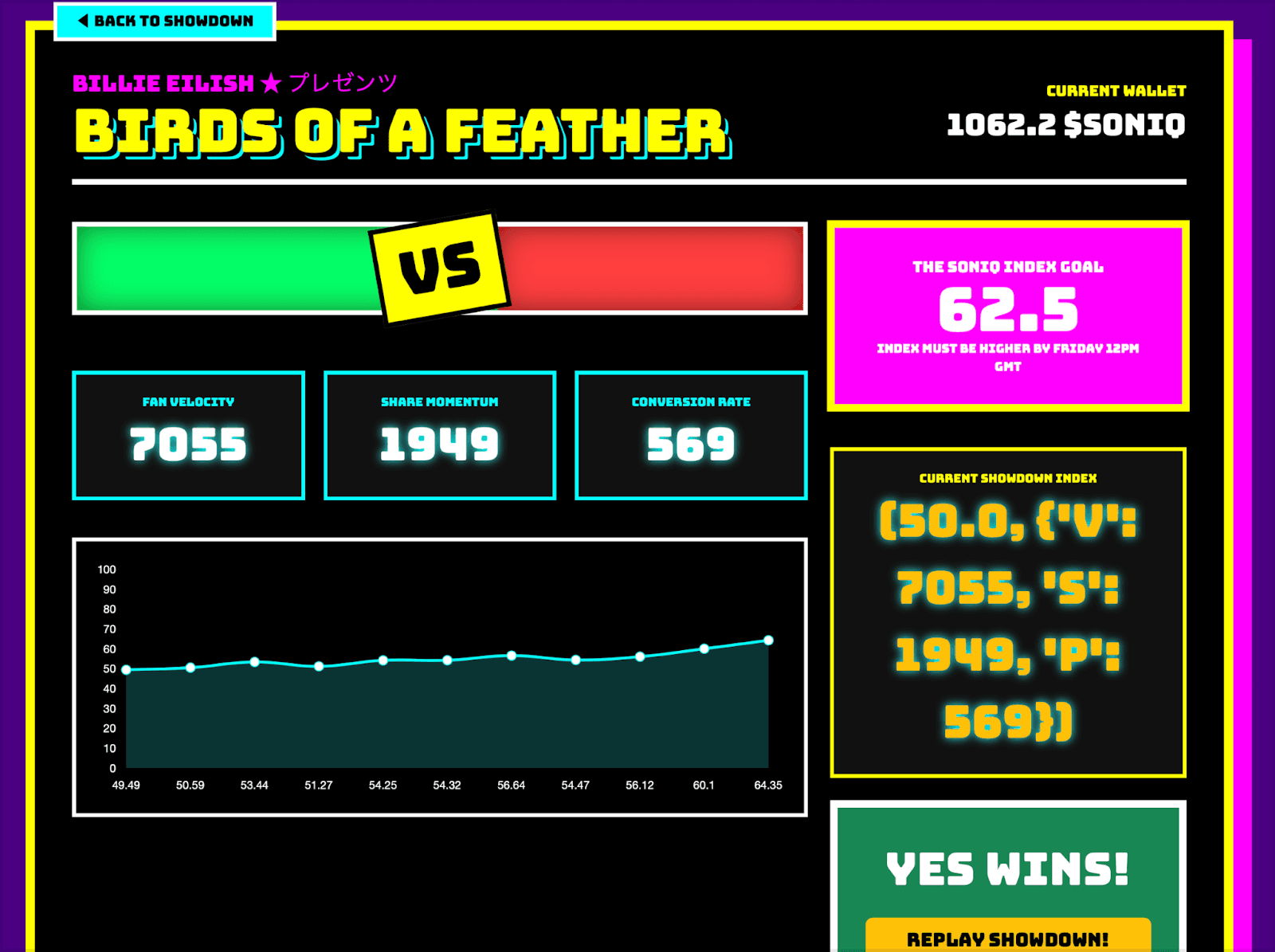 Where does this fit with helping artists with a sustainable income? Well, if we have temporal data on artists and their releases (we do), we can then allow others to speculate on their success… However, in our case, we split the profit from the challenge outcome with the artist. Let’s think about that for a minute.