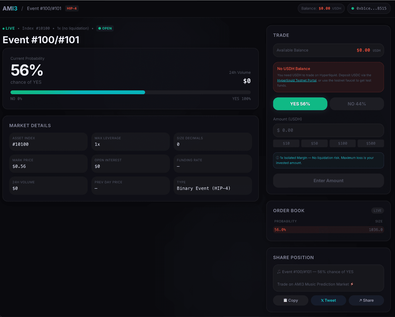 Hopefully, you can start to see where we’re going here. The next iteration we’ve been working on is a live HyperLiquid test - where we’re pulling back their HIP4 markets and testing how things work. You can see a couple of screenshots below from the working POC. No conclusion here yet, and getting on the HyperLiquid gravy train is expensive.