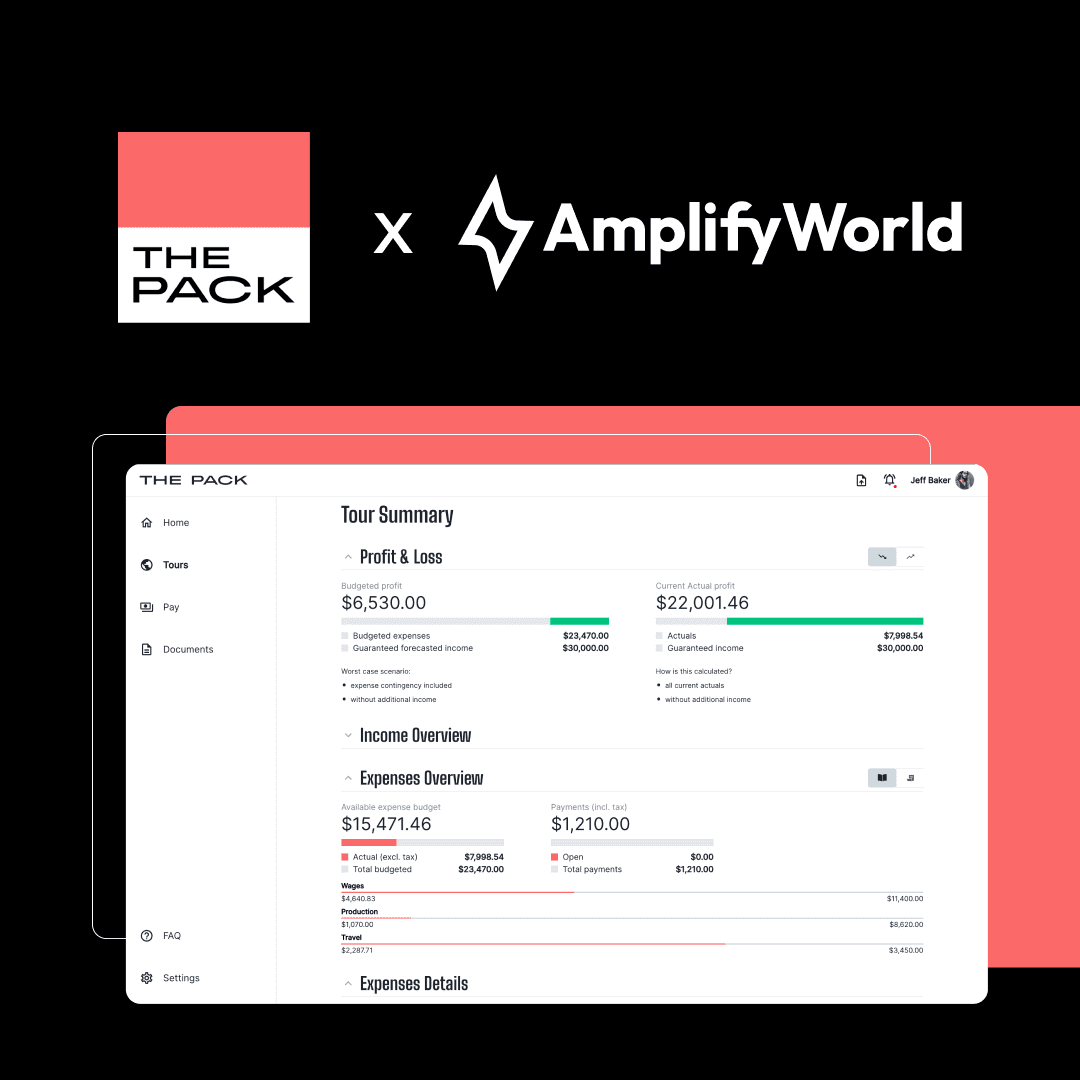 Get a clear picture of your tour’s profitability and take control of your finances today. Use the discount code AMPLIFYWORLD to get 20% off your first three months. Head to The Pack.